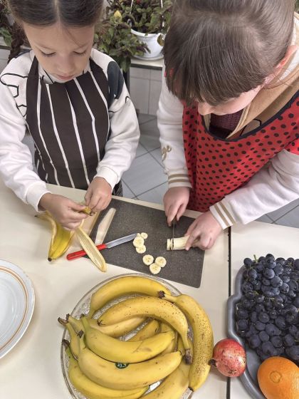 До Дня здорового харчування дівчата активно долучилися до приготування фруктових тарілок — з любов’ю нарізали яскраві, соковиті фрукти. Після цього учні в класах із задоволенням куштували вітамінні частування, нагадуючи всім, що здорова їжа — це смачно, корисно й весело! ![]()